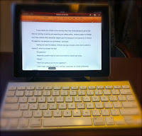 [4] Suz Baldwin, my editor / proofreader, asked about my writing situation - what sort of environment do I require when writing?I wrote a large part of the first draft of "My Life at the Bottom of the Food Chain," at my local Starbucks, and on hour-long train commutes to downtown Los Angeles. Required tools of the trade are my iPad and wireless bluetooth keyboard. I usually have a coffee or bottle of water nearby. General ambience - normal conversation or the rumble of the train - generally don't bother me, so I don't typically feel the need for earbuds. However, if there's abnormally loud, distracting conversation or music, I'll put on earbuds and listen to something in keeping with the mood of whatever I'm writing. This "mood music" must be instrumental - I find vocals distracting.