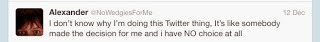 Alexander's Tweets @NoWedgiesForMe (Update)