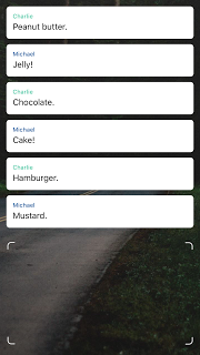 The opening lines of Played.The story is told entirely through dialogue. There's no description or third person observation. The scene must be set and the story told entirely through text. Character names can be indicated as one might find in a group chat, and a background image for the chat screen can help set the scene. Also, if the story occurs in more than one setting, that background image can change to indicate a change in venue.