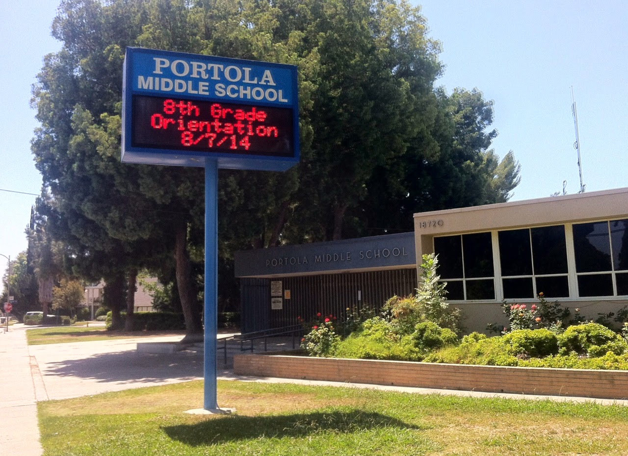 Naturally, the book was inspired by my own experiences, and I did have Portola Middle School (then, it was called a junior high school) in mind. We stopped by the front gate this Sunday, a location that features prominently in the novel. It's a place of perceived danger by Alexander, and the site of a climactic confrontation.