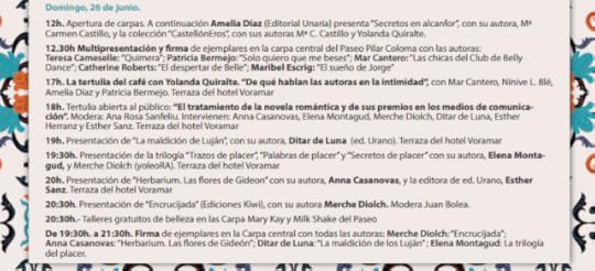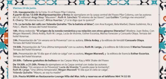 Os dejo el programa del viernes y el sábado por si os apetece acercaros para ver a grandes compañeras y amigas como son Olivia Ardey, Megan Maxwell o Mercedes Perles, entre otras.