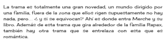 Me metí de lleno entre sus páginas entusiasmada por lo que leía y deseando saber que estaba pasando y quien iba detrás de la protagonista. Quería saber mas y mas y ahora que lo sé todo solo puedo decir una osa: