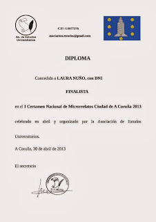 Mes de sorpresas. Quedar finalista en un certamen literario siempre te pinta una sonrisa. "La espera" mereció la pena.