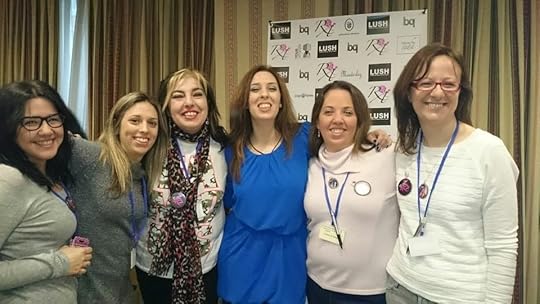Con Loli, Diana Al Azem, Connie, Lucinda y Marta. Seguimos con el ganso, jajajaToca sentarnos y escuchar el discurso de apertura de nuestra gran Megan Maxwell. Fabulosa!