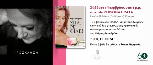 Ομιλία στην παρουσίαση του μυθιστορήματος "Σιγά, ρε φίλε" της Μάρως Λεονάρδου στην Κέρκυρα, το Σάββατο 1 Νοεμβρίου στο Cafe Persona Grata.