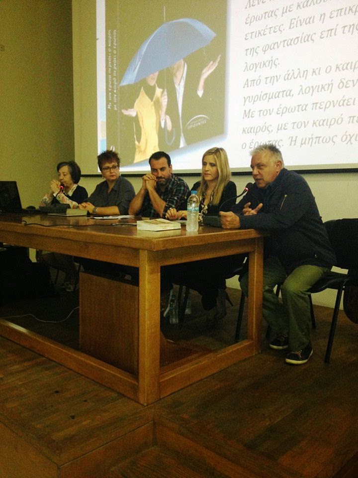 Φίλες & φίλοι. Με μεγάλη χαρά και ιδιαίτερη τιμή βρίσκομαι απόψε εδώ, στο πλευρό μιας νέας και ταλαντούχαςεπτανήσιας συγγραφέως, για να πω κι εγώ από την πλευρά μου δυο λόγια για το νέο της βιβλίο. Είναι μεγάλη η τιμή που γίνεται στο πρόσωπό μου, να βρίσκομαι ανάμεσα σε εκλεκτούς ομιλητές, σ’ έναν χώρο που σηματοδοτεί τόσα πολλά, τόσο για τη γνώση και την ιστορία, όσο και για το αύριο και το μέλλον ετούτου του τόπου.