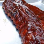 My favourite smoky treat has to be classic, babyback ribs. And yes, mine are DELICIOUS. Haha! I don’t have a set recipe for seasoning the ribs, it’s my cooking method that makes them yummy. I once heard a BBQ pitmaster say, if the meat is cooked perfectly, you don’t even need to season it with anything more than a little salt. I don’t think I’ve achieved that level of perfection, but they are pretty darn good. The trick is to cook them low and slow over wood coals. I prefer the taste of wood to charcoal, preferably mesquite. I’ll wrap my slab(s) in foil and cook the ribs over low heat, around 300F, checking for tenderness after three hours or so before finishing them naked. And I don’t add sauce until after they’re done. It’s not rocket science.