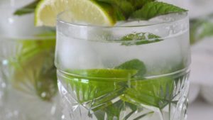 Preparation: In a glass, muddle the fresh mint leaves with the sugar and 1/2 a lime. Add the rum and top off with soda water and ice. Garnish with sprig of mint leaves and/or a slice of lime. Serve with a straw.