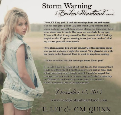 C. Quinn and E. Lee’s amazing new novel in their Broken Heartland Series, STORM WARNING, is out today and we are excited to join in the release day launch for it. STORM WARNING is a thrilling Young Adult Contemporary you are not going to want to miss! Check out what we have for you today and then enter to win in the release day launch giveaway! There’s also a fantastic excerpt for you. But be aware! The Storm Is Coming…