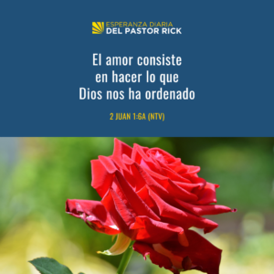 “El amor consiste en hacer lo que Dios nos ha ordenado”. 2 Juan 1:6a (NTV)