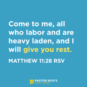Jesus promises, “Come to me, all who labor and are heavy laden, and I will give you rest” (Matthew 11:28 RSV).