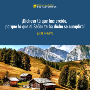 “¡Dichosa tú que has creído, porque lo que el Señor te ha dicho se cumplirá!”. Lucas 1:45 (NVI)