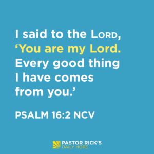 Psalm 16:1-2 says, “Protect me, God, because I trust in you. I said to the Lord, ‘You are my Lord. Every good thing I have comes from you’” (NCV).