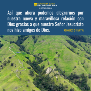 “Así que ahora podemos alegrarnos por nuestra nueva y maravillosa relación con Dios gracias a que nuestro Señor Jesucristo nos hizo amigos de Dios”. Romanos 5:11 (NTV)