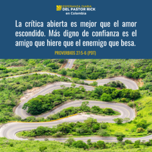 Cuando amas a alguien, eres sincero con esa persona. La Biblia también dice esto en Proverbios 27:5-6, “La crítica abierta es mejor que el amor escondido. Más digno de confianza es el amigo que hiere que el enemigo que besa” (PDT). Estas personas te aman, así que cuando dicen lo que dicen lo hacen por amor.