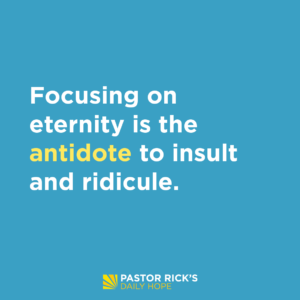 Focusing on eternity is the antidote to insult and ridicule. Why? Because the opinions of others won’t last. Their disapproval won’t last. Yes, you can listen to their opinions, but don’t overvalue what they say.