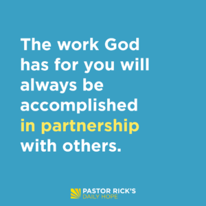 Maybe you’re struggling to accomplish your goal because you’ve been going at it alone. Remember, you were never meant to live without community. The work God has for you will always be accomplished in partnership with others.