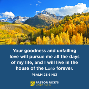 “Surely your goodness and unfailing love will pursue me all the days of my life, and I will live in the house of the Lord forever.”