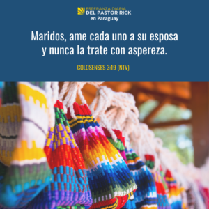 “Maridos, ame cada uno a su esposa y nunca la trate con aspereza”. Colosenses 3:19 (NTV)