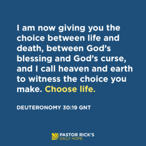 “I am now giving you the choice between life and death, between God’s blessing and God’s curse, and I call heaven and earth to witness the choice you make. Choose life.”
