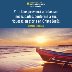 “Y mi Dios proveerá a todas sus necesidades, conforme a sus riquezas en gloria en Cristo Jesús”. Filipenses 4:19 (NBLA)