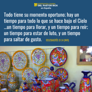 “Todo tiene su momento oportuno; hay un tiempo para todo lo que se hace bajo el Cielo… un tiempo para llorar, y un tiempo para reír; un tiempo para estar de luto, y un tiempo para saltar de gusto”. Eclesiastés 3:1,4 (NVI)