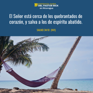 “El Señor está cerca de los quebrantados de corazón, y salva a los de espíritu abatido”. Salmo 34:18 (NVI)