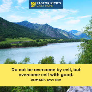 But God says that is not the way you’re going to win the battle against evil. Romans 12:21 says, “Do not be overcome by evil, but overcome evil with good” (NIV). That is God’s way of winning the battle.