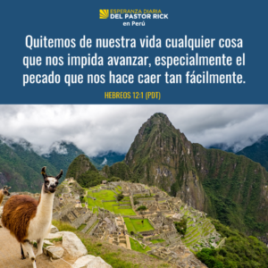 “Fijémonos entonces que nos rodean muchísimas personas que demostraron su fe. Corramos sin fallar la carrera que tenemos por delante. Quitemos de nuestra vida cualquier cosa que nos impida avanzar, especialmente el pecado que nos hace caer tan fácilmente”. Hebreos 12:1 ( PDT)