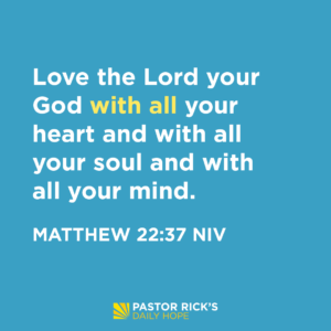 Jesus said: “Love the Lord your God with all your heart and with all your soul and with all your mind. This is the first and greatest commandment” (Matthew 22:37-38 NIV).