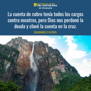 Teníamos una deuda porque no cumplimos las leyes de Dios. La cuenta de cobro tenía todos los cargos contra nosotros, pero Dios nos perdonó la deuda y clavó la cuenta en la cruz”. Colosenses 2:14 (PDT)