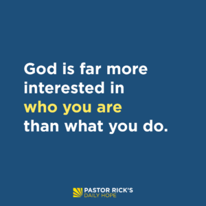You’ve probably spent a lot of time trying to determine what you want to do in life. But God is far more interested in who you are than what you do. You’re not taking your career to heaven. You are taking your character.