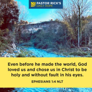Here’s some good news: The Bible says in Ephesians 1:4, “Even before he made the world, God loved us and chose us in Christ to be holy and without fault in his eyes” (NLT).