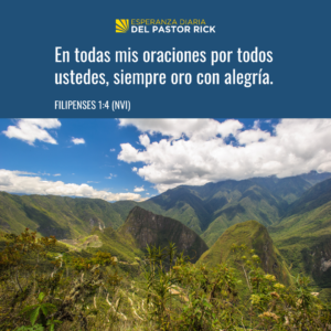 Pablo dice en Filipenses 1:4: “En todas mis oraciones por todos ustedes, siempre oro con alegría” (NVI).