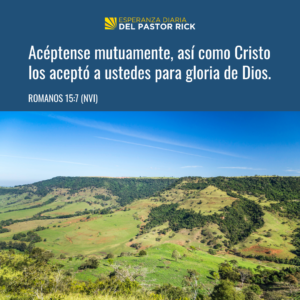 “Acéptense mutuamente, así como Cristo los aceptó a ustedes para gloria de Dios”. Romanos 15:7 (NVI)