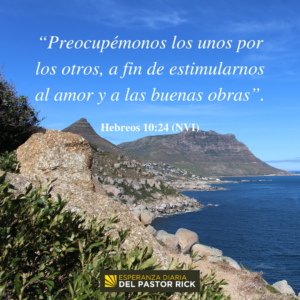 “Preocupémonos los unos por los otros, a fin de estimularnos al amor y a las buenas obras”. Hebreos 10:24 (NVI)