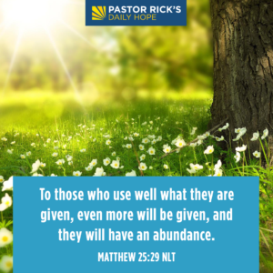 As Matthew 25:29 says, “To those who use well what they are given, even more will be given, and they will have an abundance. But from those who do nothing, even what little they have will be taken away” (NLT).