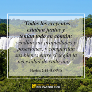 “Todos los creyentes estaban juntos y tenían todo en común: vendían sus propiedades y posesiones, y compartían sus bienes entre sí según la necesidad de cada uno”. Hechos 2:44-45 (NVI)