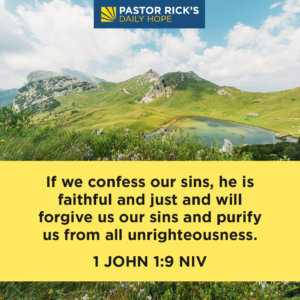 When we confess our sins, “he is faithful and just and will forgive us our sins and purify us from all unrighteousness” (1 John 1:9 NIV).