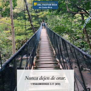 “Nunca dejen de orar”. 1 Tesalonicenses 5:17 (NTV)