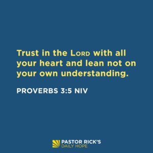 Let’s look again at the first part of that passage: “Trust in the Lord with all your heart and lean not on your own understanding” (Proverbs 3:5 NIV).