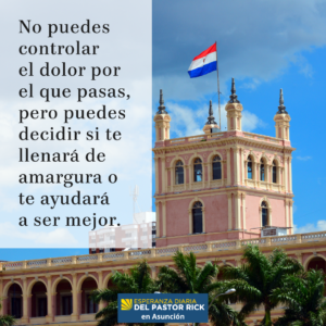 Segundo, Dios saca lo bueno de lo malo. Uno de los versículos más famosos de la Biblia es Romanos 8:28: “Sabemos que Dios dispone todas las cosas para el bien de quienes lo aman”. Cuando experimentas una pérdida, es una oportunidad para crecer en carácter. No puedes controlar el dolor por el que pasas, pero puedes decidir si te llenará de amargura o te ayudará a ser mejor. Tú decides si va a ser un escalón o un obstáculo. Tienes que recordar que incluso en tu dolor, Dios está trabajando para tu bien.
