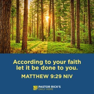 Once you’ve figured out what matters most, set goals big enough to require faith. Jesus says in Matthew 9 that he will bless you as much as you want. His blessing depends on the size of your faith. He says, “According to your faith let it be done to you” (Matthew 9:29 NIV).