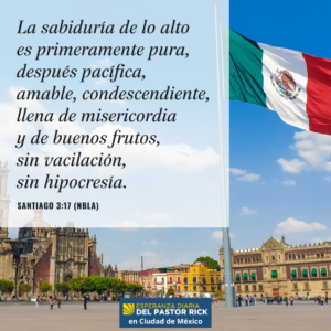 “La sabiduría de lo alto es primeramente pura, después pacífica, amable, condescendiente, llena de misericordia y de buenos frutos, sin vacilación, sin hipocresía”. Santiago 3:17 (NBLA)