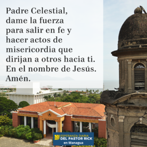 “Padre celestial, tu palabra me convence. Quiero tu bendición en mi vida, y quiero ser una persona misericordiosa. Cuando miro estas siete cosas, pienso en deficiencias y debilidades en mi propia vida. Oro para que, en lugar de solo escuchar la Palabra, haga algo al respecto. Dame el valor de ser misericordioso. Dame la fuerza esta semana para salir en fe y hacer actos de misericordia radicales y premeditados que dirija a otros hacia ti. En el nombre de Jesús. Amén”.