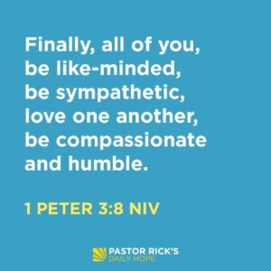 “Finally, all of you, be like-minded, be sympathetic, love one another, be compassionate and humble.”