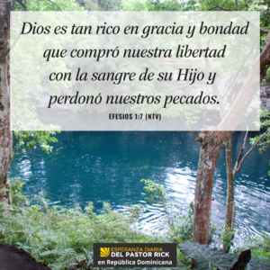 “ Dios es tan rico en gracia y bondad que compró nuestra libertad con la sangre de su Hijo y perdonó nuestros pecados ”. Efesios 1:7 (NTV)