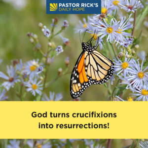 God specializes in bringing good out of bad. He turns crucifixions into resurrections! The disciples responded in fear and despair to Jesus’ death on the cross, but God brought good—the salvation of humanity—out of it.