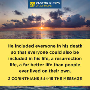 “[Jesus] included everyone in his death so that everyone could also be included in his life, a resurrection life, a far better life than people ever lived on their own.”