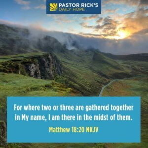 God promises in Matthew 18:20, “For where two or three are gathered together in My name, I am there in the midst of them” (NKJV).